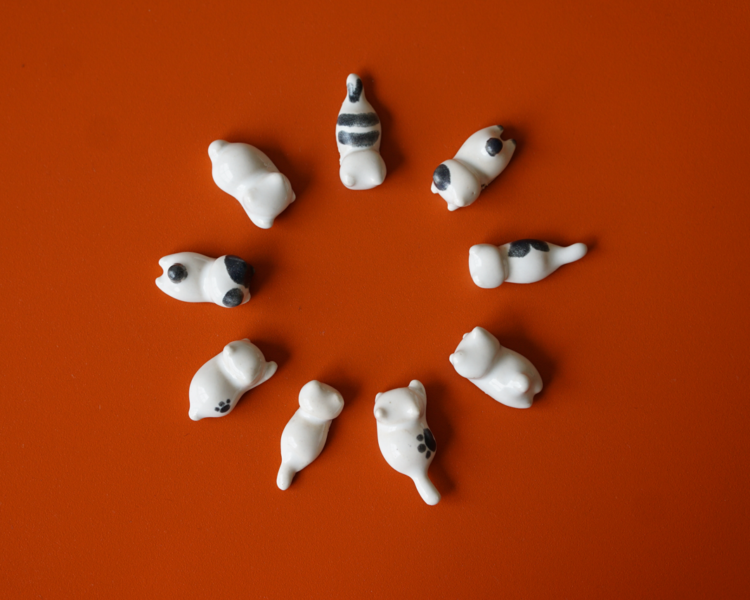 Resting cats in unique glaze colors, perfect for displaying together or gifting individually!