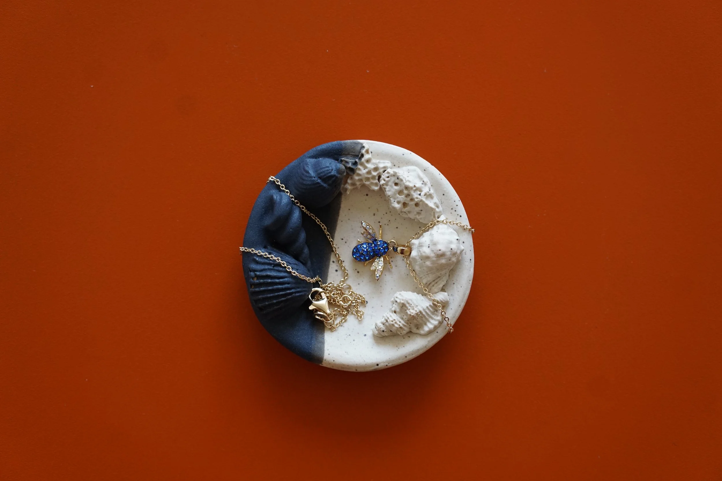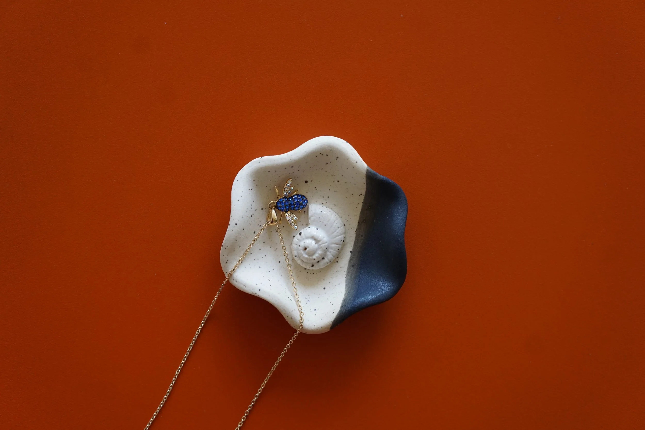 Deep matte black touched with speckled texture, reminiscent of a star-dusted night sky, made with care and glazed using food-safe finishes unless noted otherwise. Please note: crackled or flaky glazes are not food safe — this piece is intended for decorative purposes only. Size and weight are listed, with a photo of my hand included for scale.